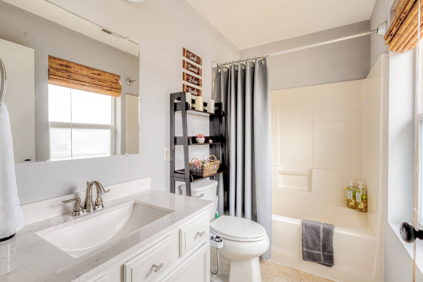 ⭑Master Bedroom:⭑ ✔ Step into your spacious master bedroom, a serene retreat with elegant French doors leading to a private deck/balcony. Wake up to sunlight streaming in or step outside for a breath of fresh air with your morning coffee. At night, unwind and stargaze while enjoying the peaceful ambiance of this outdoor haven. ✔ The room features ample storage with a large closet and dresser, along with soft, breathable bed linens and room-darkening shades for the perfect night’s sleep. ⭑Second Bedroom:⭑ ✔ The second bedroom offers a cozy, inviting space for guests or family members. Its carefully selected decor creates a peaceful atmosphere, perfect for rest and relaxation after a day of exploring the area. ✔ You'll find extra pillows, plush blankets, and premium cotton linens, ensuring everyone feels right at home. The bedroom also includes hangers and storage space, so you can unpack and settle in comfortably. ⭑Living Room:⭑ ✔ The open-concept living room seamlessly connects to the kitchen and dining area, creating a welcoming space for socializing or simply relaxing. Sink into the comfortable seating and enjoy movie nights or your favorite shows on the 55-inch TV, which comes equipped with Netflix, Amazon Prime Video, HBO Max, and standard cable. ⭑Kitchen and Dining Area:⭑ ✔ The modern kitchen boasts new tile flooring and all the essentials for home cooking, including a stainless steel oven, electric stove, refrigerator, and Keurig coffee maker. Whether you're preparing a family feast or a simple breakfast, the well-stocked kitchen—with pots, pans, spices, and cooking basics—has everything you need. ✔ Gather around the dining table for meals or step outside to the deck, where you can dine al fresco and take in the fresh air. It’s the perfect spot for a leisurely breakfast or evening wine. ⭑Bathrooms:⭑ ✔ The master and guest bathrooms offer a relaxing retreat, with a bidet, bathtub, and a selection of complimentary toiletries such as shampoo, conditioner, shower gel, and body soap. After a long day, soak in the tub or freshen up in the spacious shower with hot water and soft towels at your disposal. ✔ A convenient half-bath on the main floor makes it easy for guests to freshen up without having to go upstairs. ⭑Outdoor Space:⭑ ✔ Step outside into your private, fully fenced backyard—a tranquil space perfect for both relaxing and entertaining. The large Trex-like deck is ideal for lounging during the day or enjoying a quiet evening under the stars. The backyard's lush greenery and garden view create a peaceful, refreshing escape from the hustle and bustle. ✔ The yard is easily accessible with two unlocked gates for added convenience, making it an ideal space for outdoor activities or simply unwinding with your favorite book on the patio furniture. ⭑Additional Amenities:⭑ ✔ To make your stay as comfortable as possible, we’ve provided a variety of thoughtful extras: a washer and dryer in the unit for laundry needs, baby safety gates for family-friendly stays, and a Keurig coffee maker to kickstart your mornings. ✔ You’ll also find useful kitchen gadgets such as a rice maker, blender, toaster, and wine glasses, along with complimentary coffee and basic cooking ingredients to enhance your stay. ⭑Safety and Security:⭑ ✔ Your peace of mind is important to us. Our home is equipped with a smoke alarm, carbon monoxide detector, fire extinguisher, and a fully stocked first aid kit for your safety and comfort. ⭑Entertainment and Connectivity:⭑ ✔ Stay connected with high-speed wifi (198 Mbps), perfect for streaming 4K videos, joining video calls, or browsing the web across multiple devices. ✔ For those working remotely, a dedicated workspace is available in a common area, offering the focus and connectivity you need during your stay. ⭑Heating and Cooling:⭑ ✔ Stay cool in the summer with our efficient AC split-type ductless system, and cozy in the winter with central heating to ensure your comfort no matter the season. ⭑Parking and Facilities:⭑ ✔ Enjoy the convenience of free parking on the premises and easy street parking. ⭑Services:⭑ ✔ We offer self check-in through a Smart Lock system, providing a smooth and private entry experience. Whether you’re planning a weekend getaway or an extended stay, we welcome long-term guests with stays of 28 days or more. Your stay at Hoffman Hill Flat promises luxurious comfort, unmatched convenience, and a memorable experience. Book now and elevate your DuPont adventure in style! ⭑Conclusion⭑ We look forward to hosting you in our beautifully updated and well-maintained home! Whether you're here for a quick getaway or an extended stay, [Property Name] offers everything you need for an unforgettable experience. Secure your dates now and start planning your next adventure today!